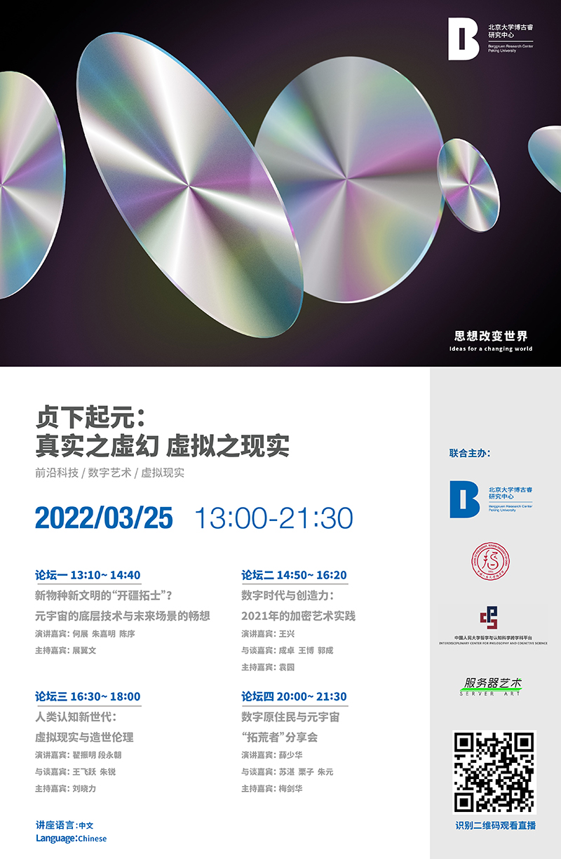 3月25日,由北京大学博古睿研究中心、中国人民大学哲学院、中国人民大学哲学与认知科学交叉平台、服务器艺术联合主办的“贞下起元:真实之虚幻 虚拟之现实”线下论坛在北京举办。